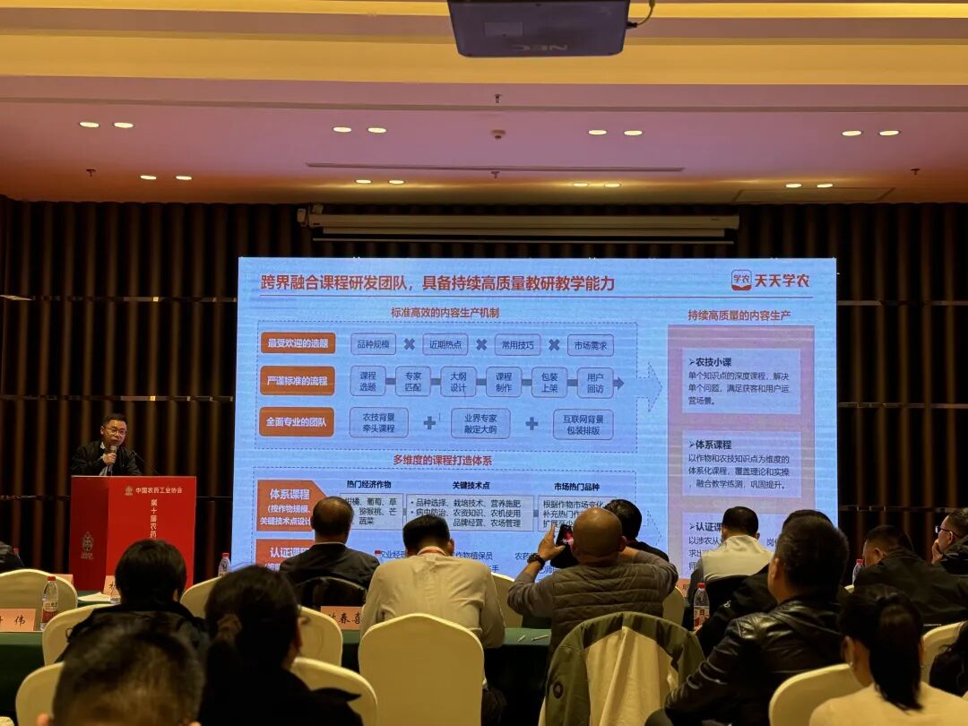 在第十届农药安全科学使用专题会上,丰农控股旗下天天学农创始人赵广发表了题为“农化新机遇:组织进化、数字营销的落地之道” 的演讲,为行业发展带来全新思想碰撞。赵广在演讲中强调,随着农业数字化进程的加速,线上流量红利正持续释放,短视频、直播、AI 搜索等新兴渠道将成为未来“品牌、流量”必争之地,农化企业需加速从 “单纯卖产品” 向 “产品 + 服务 + 内容” 的综合模式转型,以专业价值构建品牌信任与行业影响力。同时,针对农业企业人才断层、技能滞后的行业难题,数字化内训系统已成为提升组织核心能力、推动战略高效落地的核心支撑。为此,天天学农依托平台资源与优势,升级推出 “天天课堂 SAAS V2.0” 平台,发布 “丰创繁星计划”,为农化企业提供人才培训平台、内容分享平台、AI赋能平台,让抽象的企业服务转化为看得见、摸得着的增长实效。