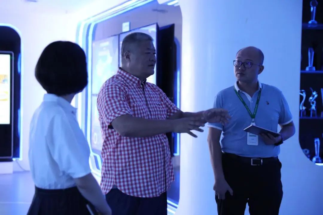 在范恒硕的带领下,深圳市工业和信息化局副局长胡晓清领导先后分别参观了丰农控股荣誉走廊、科技应用展厅及丰创研究院实验室,课程直播室以及课程演播室。