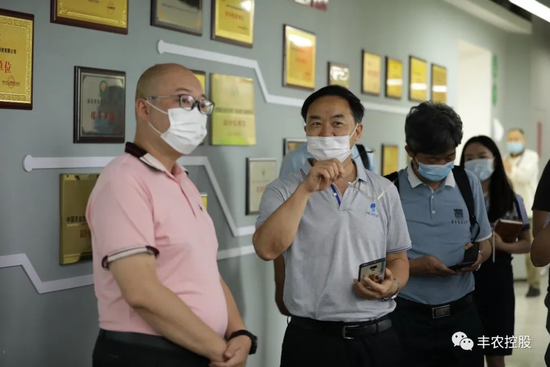 在参观的过程中,范恒硕全面介绍丰农控股发展历程及农业全产业链发展的整体构架,并表示,丰农控股是一家集产业、教育、科技、资本为一体的农业产业服务集团,旗下的“大丰收”、“天天学农”、“识农”、“丰诚上品”“甲子启航”等农业领域品牌实现农业产业产前、产中、产后农业产业链全覆盖,解决传统农资流通渠道单一、农技知识薄弱、田间服务不完整、农产品上行难等困难。