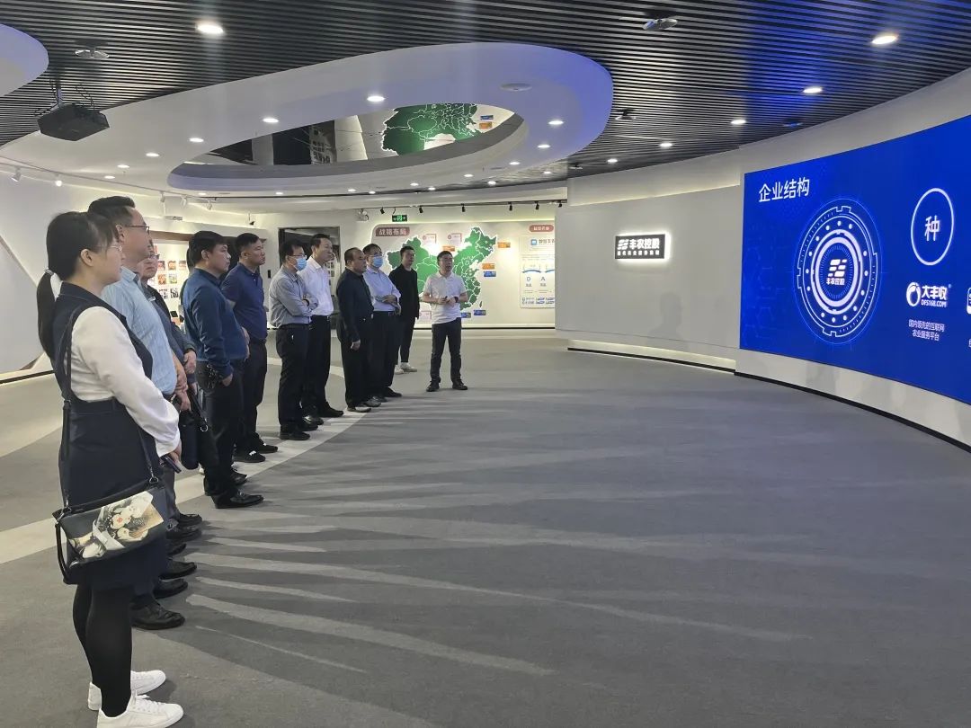 赵广带领丁志刚一行参观公司办公区域、展厅、实验室、天空农场,介绍公司业务板块以及发展历程。