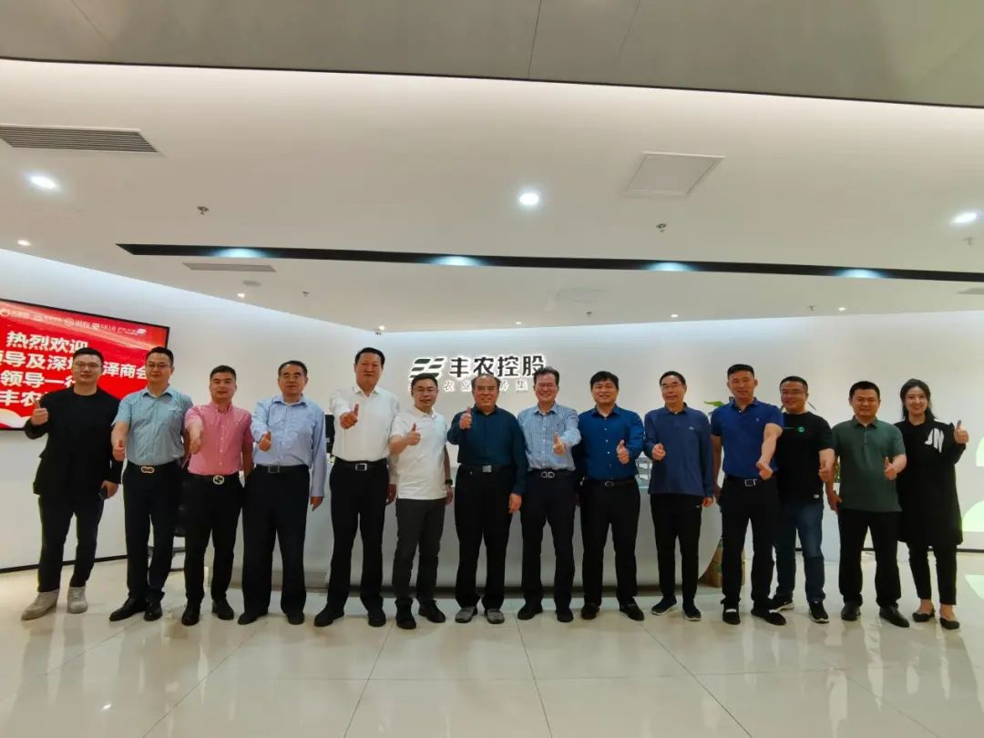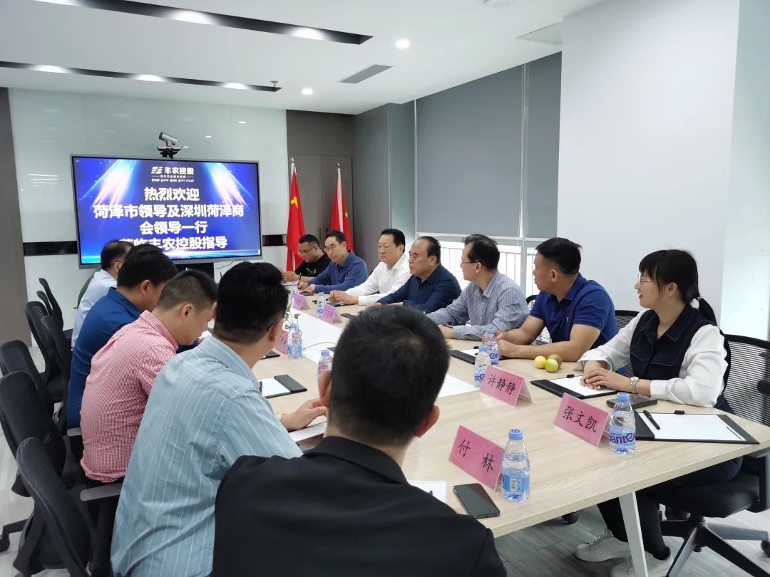 近日,由深圳市菏泽商会推荐,菏泽市人大常委会副主任、党组副书记、市总工会主席丁志刚带队来丰农控股参观调研,菏泽市委统战部二级巡视员王乃光、市人大常委会副秘书长陈允全、市返乡创业服务中心甄君华副主任、全国菏商联盟执行主席秘书长李海滨等陪同参观,天天学农CEO赵广等人陪同接待。