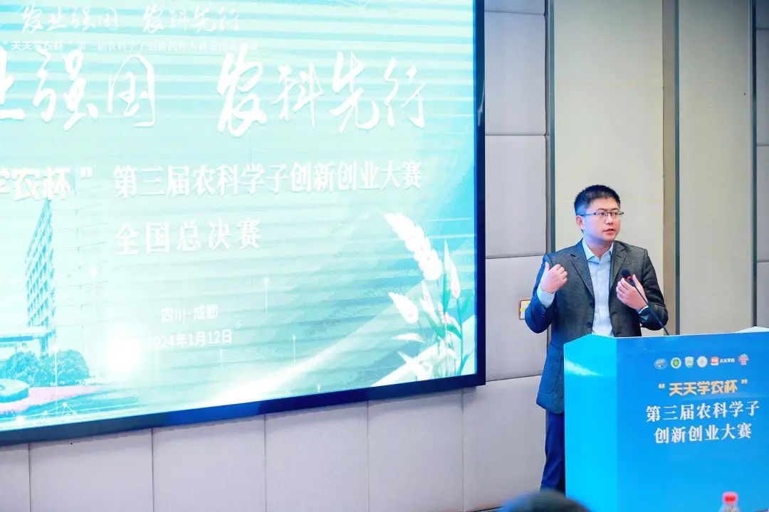 “农业强国 农科先行”,1月12日,“天天学农”杯第三届全国农科学子创新创业大赛(以下简称“双创大赛”)总决赛于四川农业大学圆满落幕。本次双创大赛由中国作物学会、全国农学协同发展联盟、中国农业大学主办,丰农控股旗下成员企业深圳市天天学农网络科技有限公司协办之一。总决赛邀请了作物学会人才专委会、中国农业大学、东北农业大学、华中农业大学、四川农业大学等高校领导、专家,天天学农、佳沛泽普果业相关领导出席比赛并担任总决赛评委,特邀四川农业大学党委副书记张强出席活动并发表开幕致辞。