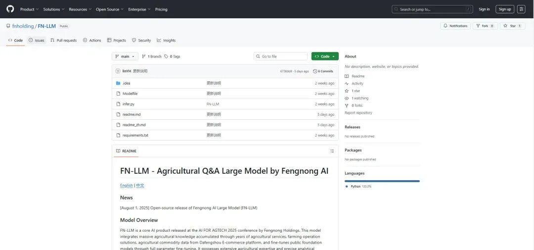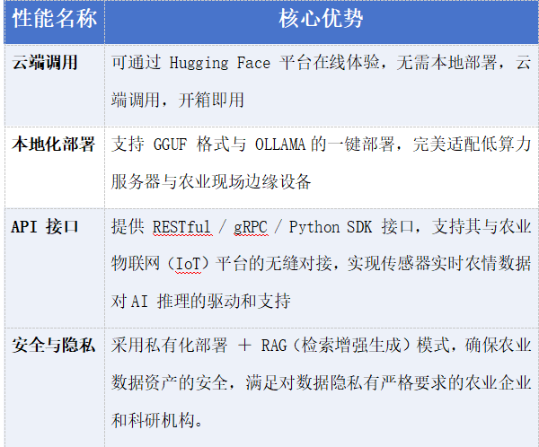 2025年8月1日,深圳市丰农控股(集团)有限公司(FN Holding)正式在全球两大顶级开源人工智能平台 GitHub 与 Hugging Face 发布了 FN-LLM 模型,在面向全球开放代码与权重下载的同时,同步提供了从云端调用到完全私有化部署的整套解决方案,以“识农AI”工具真正实现了农服AI大模型的落地应用,成为国内农业垂直领域首次真正意义上的开源农业大模型,为全球智慧农业发展注入了全新的生机与动能,实现了让 AI真正走进田间地头、让 AI真正赋能每一位农业从业者的目的。 FN-LLM 的训练数据并非单纯依赖通用语料,而是补充构建了基于丰农控股多年农业技术服务的深厚技术积累与丰富生产数据,开发了基于这些长时间积累、源于种植一线数据的全产业链多元数据的农业专属数据底座,这使得 FN-LLM 所生成和输出的答案、农事建议更具实操性与落地性,这一点显著区别于通用大模型。我们的农业专属数据底座包括如下数据体系: 权威农业知识:整合农业教材、专著、科研论文等科学经典的农业知识,以及种植技术专家技术和农业服务人员实践经验,全面覆盖种质品种、建园种植、丰产栽培、优质管理、绿色植保、产量品质管理、采收储运等作物技术和畜牧、水产、园艺等产业链的完整知识体系。 真实农事数据: 汇聚丰农控股十余年农业基地技术托管服务积累的农技服务巡园记录、实地诊断日志、农事管理方案、中期和年度总结、技术实验报告、产品实验报告,以及线上问答、专家培训课件等真实农技数据,确保大模型输出的方案和建议能够直接应用于生产实践。 农资商品信息: 大量收集了涵盖农药、化肥、植物调节剂、微生物制品、农机具等商品的综合信息,包括成分、适用对象、使用时间与方法等关键技术和参数,使得输出农事建议时可以提供科学精准的农资匹配。 构建精标数据集 FN-dataset: 生成超 5,000 条的高质量农业问答对,经过专业清洗与人工标注,构建了精标数据集 FN-dataset,支持大模型结论精准匹配和圆满符合生产实际需求。 FN-LLM 采用基于 Transformer 解码器结构,拥有 32 层网络,隐藏层维度 4,096,前馈层维度 11,008,并配备多头注意力机制(32 头 × 128 维),确保了模型具有强大的数据处理能力。 提升参数规模 FN-LLM-2B: 20 亿参数,低算力友好,尤其适合农业现场的边缘部署,可在 6GB 显存下运行。下一步的FN-LLM-7B、FN-LLM-13B,将服务于更高精度的科研与多模态任务,满足更复杂的农业AI计算需求。 上下文长度:支持 8K Token 输入,能处理农技长文档、复杂生产方案等长文本,提升推理的深度与准确性。 优化计算策略 以全参数微调 (Full Parameter Fine-Tuning) + LoRA 双模式支持方式, 提供灵活高效的模型微调方案。 建立农业领域特定词表与分词器优化,使农业术语识别准确率提升 18%,大幅降低误解误判,确保专业沟通无障碍。 建立了KV-Cache 持久化 + FlashAttention系统,大幅提升多轮对话的性能效率,让FN-LLM的农业问答与决策过程更加流畅高效。 以INT8 / INT4 双模式实现系统运行的量化支持,使显存节省最高 70%,模型能够在更低配置的硬件上运行。 通过上述多方面的技术、数据和条件配置,使得FN-LLM 在多项关键指标上表现出色,充分验证了其在智慧农业领域的卓越性能: 推理延迟 在 NVIDIA A100 GPU 上,1K Token 平均延迟仅 40ms,实现接近实时的响应 吞吐量 单卡生成速度可达 200+ Token/s,确保高效率信息产出 农业问答准确率 基于自建的 3,000 条农业 QA 测试集,正确率高达 92.4% 病虫害诊断综合准确率 结合图像识别与文本推理,准确率达到 89.7% 农事计划合理性 经农业专家评测,均分高达 4.6 / 5,显著高于通用大模型所提供的建议 跨区域适配能力 结合气象与土壤数据动态调整建议,精度提升 23%,适应不同地域的农业生产环境 FN-LLM强大能力不仅体现在复杂的生产方案生成和推送中,更通过丰农控股自研的面向终端农户的“识农AI”小程序,成为了服务上百万农人的真正落地的AI应用工具。 “识农AI”小程序 这是一个集成了病虫害识别、农业百科、农事问答等功能的AI农服工具。农户只需通过手机拍照或文字描述,即可获得基于FN-LLM大模型的精准识别诊断,还可以延伸获取农事管理方案的科学建议,解决日常生产中的是什么?怎么办等实际咨询难题。FN-LLM 能够提供“发育阶段+技术策略”式的专业输出,这是通用大模型难以实现的农业精细化管理能力;可以精准提出氮、磷、钾与中微量元素施用调配建议,提供基于墒情的灌溉策略与操作建议。通过这样的专业指导,农户能更科学地精准管理作物,实现节本增效和增产增收。 FN-LLM 的核心优势在于其深入农业的技术专业性、极致的部署灵活性、卓越的推理和输出效率,以及真正的开源开放机制,为智慧农业带来了变革性的解决方案和切实高效的应用落地。 农业最懂行 60%+ 数据源自真实农业场景,术语识别与决策建议精准度行业领先,已通过“识农AI”应用而服务上百万农人 部署最灵活 从 2B 轻量模型到 13B 高精度模型全覆盖,支持云边端一体化适配,可以满足不同场景下的计算需求和运行。 推理最快速 量化优化 + 推理加速的复合技术,可在农业现场实现秒级响应,决策不再等待。 真正开源 GitHub 提供完整开源代码与权重,Hugging Face 提供即下即用,助力全球农业科技共同进步。 丰农控股坚信,AI 技术不应只存在于实验室,不应禁锢于局限主体,而应真正走