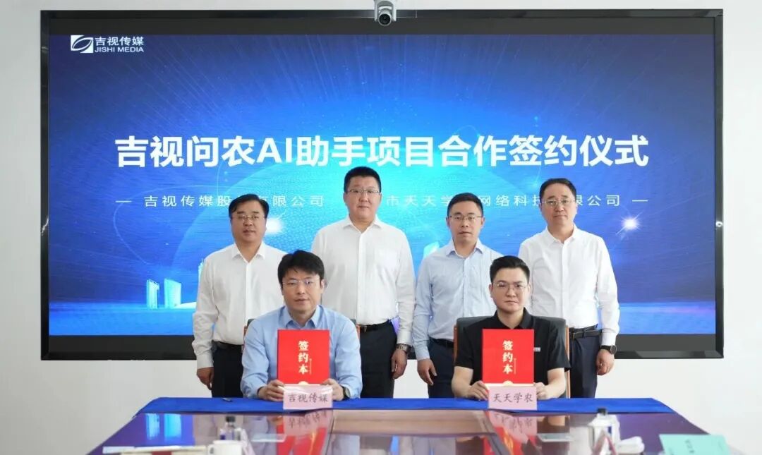 9月5日,深圳市天天学农网络科技有限公司与吉视传媒股份有限公司在吉视传媒信息枢纽中心举行。吉视传媒党委书记、董事长由志强、吉林省政府驻深圳办事处副主任冯宇新、天天学农创始人赵广出席。吉视传媒副总经理、董事会秘书孙毅与天天学农商务总监杨一磊代表双方签约。