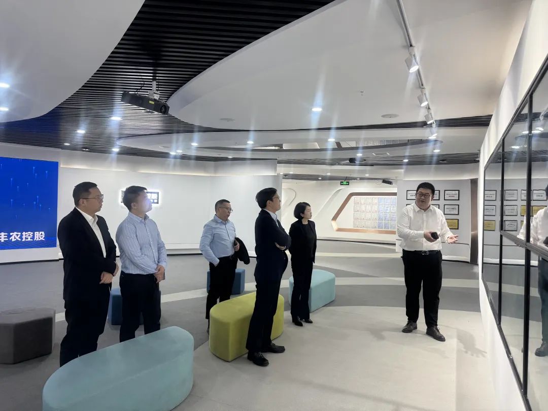 在集团展厅,刘文道董事长一行详细了解了丰农控股的发展历程、主要业务板块以及战略布局等情况,对丰农控股有了更直观、更全面的认识,在智慧农业及培训板块进行了深度交流。